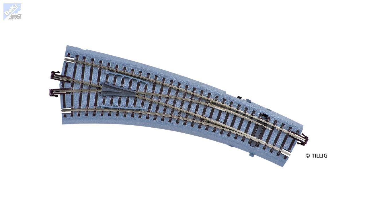 - Tillig 83864 IBW: Oblouková výhybka levá 15° na dřevěných pražcích s podložím, ruční přestavník